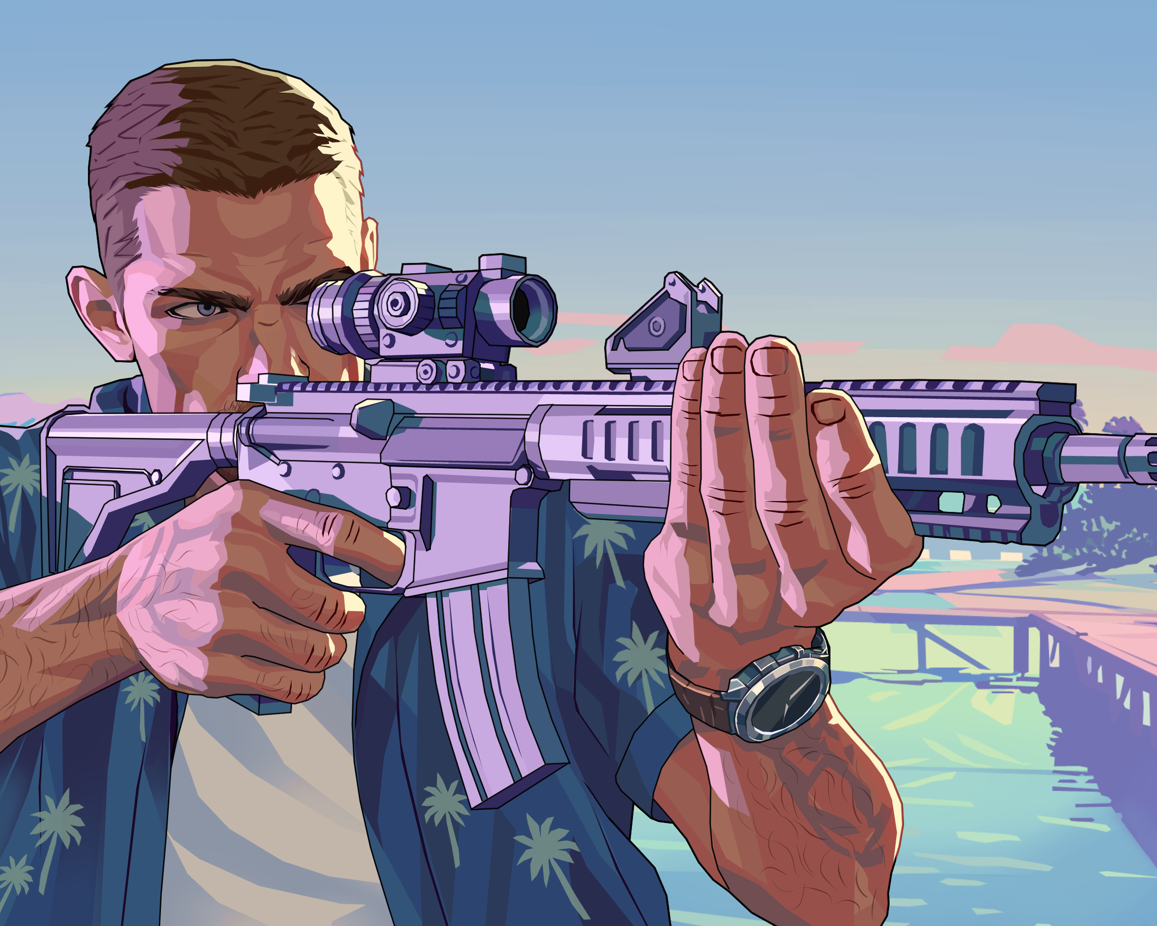 Un décor tropical et vibrant qui accompagne parfaitement tes parties de Grand Theft Auto.